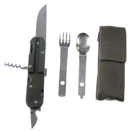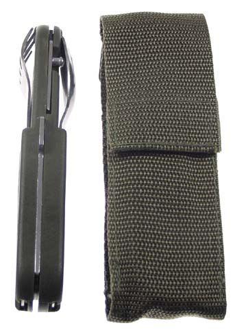 Messer klappbar, zusammensteckbar - praktisches Eßbesteck klappbar, (Messer,Gabel,Löffel,Dosen-/Flaschenöffner), Nylonetui mit Gürtelschlaufe und Gürtelklammer, Packmaß: 15 x 5 x 3 cm