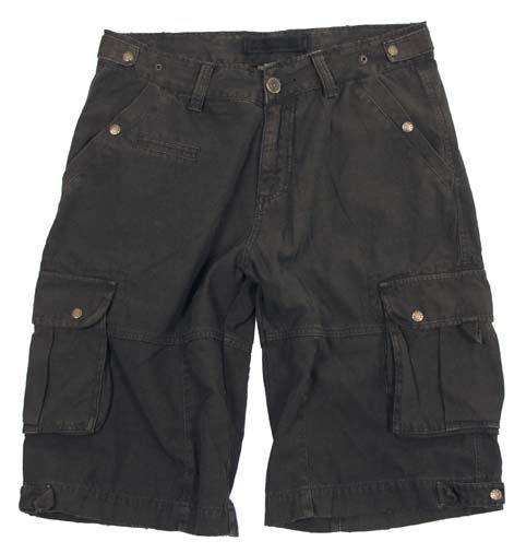 2 Einschubtaschen vorne, 2 Gesäßtaschen, 2 seitl. aufgesetzte Beintaschen, alle Taschen mit Druckknopf, abgedeckter Reißverschluß am Hosenlatz, Verstellbänder in der Taille und am Beinabschluß, 100 % Baumwolle