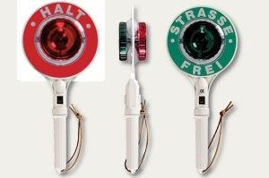 Anhaltestab 930 ND mit Kippschaltern und beidseitiger Beleuchtung Art.-Nr.: 5940-H/STF rote Seite: "HALT" grüne Seite: "STRASSE FREI" Äußerst stabiler Anhaltestab mit besonders starker Signalpla...