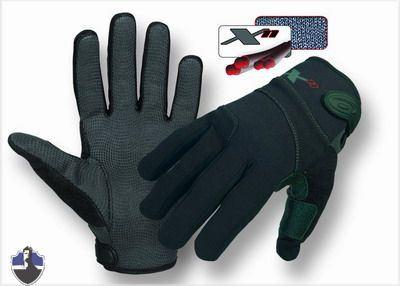 Optimaler Schnittschutz durch den neuen X11 Innenhandschuh, der seine einzigartige Schnittschutzleistung durch eine Kombination aus Spectra und Fiberglas erreicht. Bei diesem Handschuh wurde das Hauptaugenmerk auf eine verbesserte schnitthemmende Wirkung und einen Rundumschutz für die ganze Hand gelegt. Man hat deshalb nicht ganz soviel Gefühl wie beim Modell "35SGK100", aber dafür eine deutlich verbesserte schnitthemmende Wirkung. Die Handinnenseite besteht aus dem rutschfesten Posi-Grip, um einen sicheren Zugriff und optimale Waffenkontrolle zu gewährleisten. Im Bereich des Handrückens 1,5 mm dickes Neoprene mit elastischen Einlagen aus Spandex-Nylon für engen Sitz und optimale Passform. An der Außenseite des Daumens befindet sich saugfähiges Material, um damit Feuchtigkeit z.B. von Brillengläsern abwischen zu können.