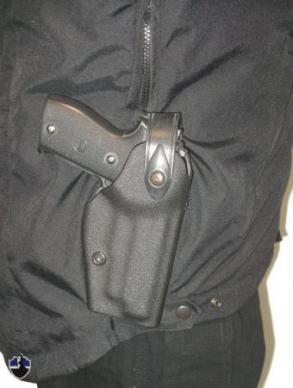 Seitlich links und rechts eingearbeiteter vertikaler Reißverschluss, um den Zugriff zur Waffe zu ermöglichen.