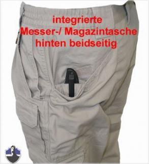 2 in die Gesäßtaschen integrierte Magazin-/Messertaschen, um Messer oder Magazin oder .... verdeckt mitführen zu können.