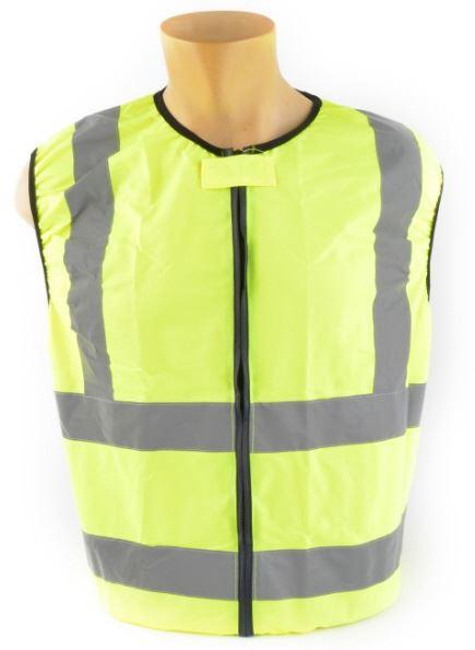 Gelbe Warnweste mit zwei 5 cm großen umlaufenden Reflexstreifen sorgen dafür, dass man nicht mehr übersehen werden kann. Pfiffige Details der Warnweste mit durchgängigen verdeckten Reißverschluss welcher im geschlossen Zustand im Halsbereich mittels Klettverschluss gesichert ist.