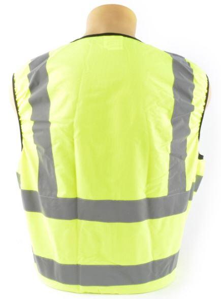 Die Warnweste verfügt über dehnbare Abschlüsse an Hals, Armen und Bund.