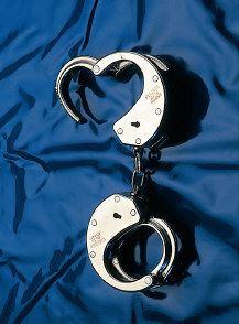 in 40 mm starker, vernickelter Ausführung vernickelte Stahlhandfessel mit Kette 40 mm starke Ausführung Schnellverriegelungsschieber, 2 Schlüssel Gewicht: 1380 g Umfang: 155-225 mm Sch...