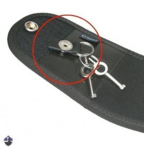 Der Schlüssel ist mit einem Druckknopf am Holster gesichert und kann ganz einfach und schnell abgenommen werden.