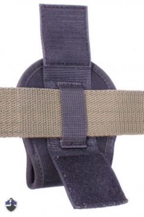 Eine Besonderheit ist die Gürtelschlaufe. Der Gürtel wird durch die interne Schlaufe gezogen und dann mit der zweiten oberen Schlaufe mit Klettverschluss gesichert. Befestigt man das Holster nur mit der oberen Schlaufe kann es befestigt/abgenommen werden ohne den Gürtel zu öffnen.