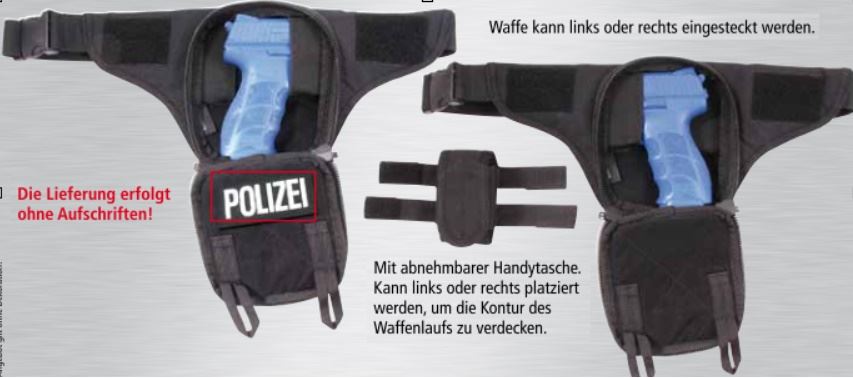 Der Clou dieses Holsters ist, daß der Lauf der Waffe im Hüftgürtel liegt und so optisch keinen Anhalt bietet, daß eine Waffe verdeckt getragen wird. Eine kleine Zubehörtasche (z.B. für Handy, etc) kann außen, wahlweise rechts oder links angebracht werden um zusätzlich die Kontur des Laufes zu verdecken.