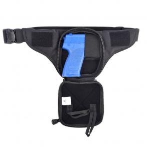 Besonders unauffällige Hüfttasche mit eingearbeitetem Waffenholster. Die Waffe kann entweder nach links oder nach rechts geholstert werden.