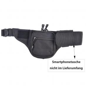 Kleinere Reservemagazine (z.B. Glock 26) oder Handy (nicht passend für Smartphone) können in der vorderen Reißverschlusstasche untergebracht werden.