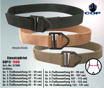 Farben: schwarz, grün und coyote (desert tan); Gürtelbreite: 45 mm. Art.-Nr.: 21500 Breite Klettfläche im Größen-Verstellbereich. Gürtel mit extrem robuster Metallschließe, der als Untergürtel, ab...
