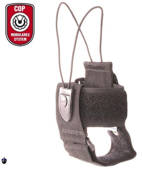 Universal-Funkgerätetasche mit Adapterstecker des Modularen Systems an der Rückseite zur Anbringung an der 2185MS Aufnahmevorrichtung mit Gürtelschlaufe des Modularen Systems.