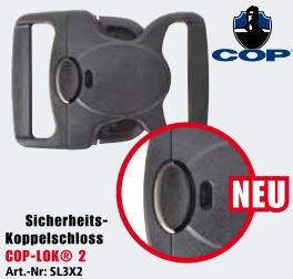 Sicherheits-Koppelschloss COP-LOK 2 Art.-Nr: SL3X2 Mit vergrößertem Knopf in der Mitte des Koppelschlosses für Dienstkoppel bis 50 mm Breite. Um die äußeren Verschluss-Laschen drücken zu können, ...