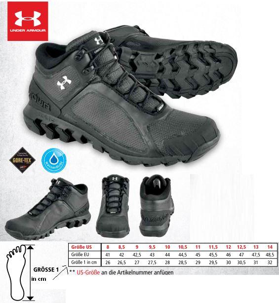 Stiefel Under Armour Tactical - Speed Freek GTX Allseasongear Art.-Nr: UA1227564S -Größe US** Farbe: schwarz Größen: US 8 - 14 (EU 41 - 48,5) (in halben Größen verfügbar) Gewicht 1 Stiefel in Gr....