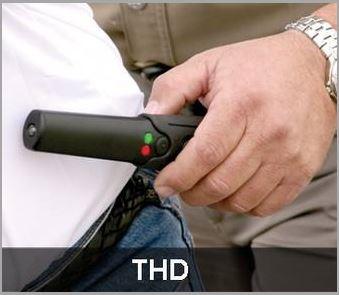 Der THD ist ein kompakter Hand-Detektor mit einem 360 Rundum-Abtastfeld. Er bietet gleichmäßige Empfindlichkeit entlang der Abtastzone und Pinpointing (Exaktortung) in der Gerätespitze für alle zu ortenden Waffen und andere Metallobjekte.