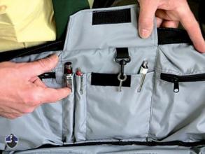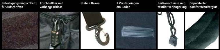 Mit vorderen Außentaschen z.B. für Stablampe, Verwarnungsblock und Funkgerät, Befestigungsschlaufen für Schlagstock, 2 seitliche Außentaschen für Kleinteile, Organizer mit Karabiner für Schlüssel, Fach für Stifte und Kleinteile usw. Herausnehmbarer Boden und herausnehmbare Seitenteile! Durch die steifen Seitenteile besitzt die Tasche eine gute Standfestigkeit und fällt nicht zusammen.