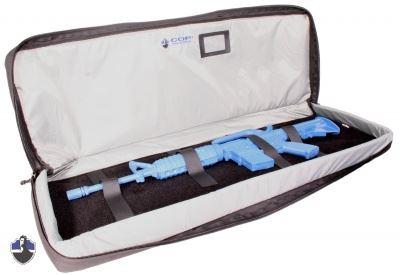 Tragetasche für Langwaffen, die optisch nicht wie eine "Gewehrtasche" wirkt. Flauschklett an der Außenseite als Vorbereitung für die Befestigung von Aufschriften (33 x 10 cm). Gepolsterter Schulterriemen. Ein großes Hauptfach und eine kleinere Außentasche - jeweils mit dreiseitig umlaufendem Reißverschluss. Alle Reißverschlüsse mit textiler Verlängerungsschlaufe, um auch das Öffnen mit Handschuhen zu ermöglichen.