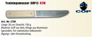 Art.-Nr: CTM Länge: 26 cm; Gewicht: 150 g Material: Griff aus Holz, Klinge aus Aluminium (gerundet). Für realistisches Selbstverteidigungs- oder Einsatztraining.