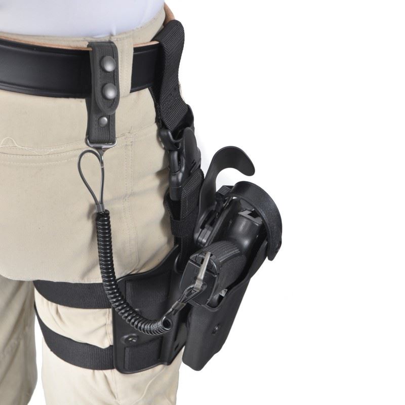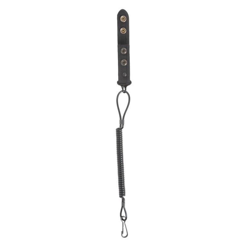 Spiralkabel, das ähnlich einem Telefonkabel (mit innenliegender schnitthemmender Schnur) sehr dehnbar ist, aber unter Belastung keine Zugkraft hat um z.B. eine Schusswaffe auf Gürtelhöhe zu halten. An einem Ende befindet sich eine Gürtelschlaufe aus hochwertigem Nylon mit zwei Druckknöpfen für Gürtel bis zu einer Breite von 58 mm. Die Gürtelschlaufe kann auch um Ober- und Untergürtel geschlauft und so gleichzeitig als Beltkeeper Verwendung finden.